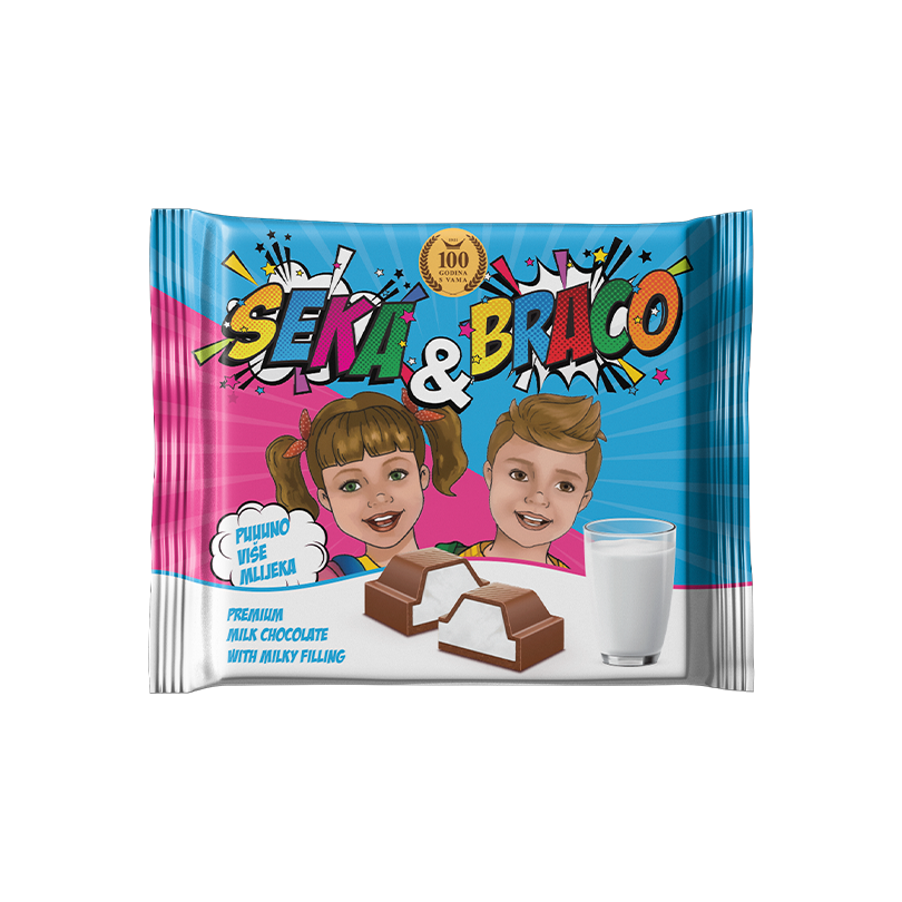 Seka & Braco čokolada s mliječnim punjenjem je klasični izbor koji će se svidjeti svima. Ova čokolada ne samo da će vam pružiti ugodan okus mlijeka, već će vam također pružiti i prednosti konzumacije čokolade u ranoj dobi. Čokolada s mlijekom bogata je kalcijem koji pomaže u održavanju zdravih kostiju i zubi. Također je bogata proteinima koji su važni za rast i razvoj mlađih osoba.