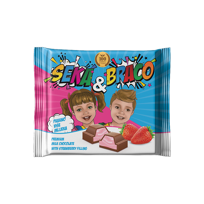 Seka & Braco čokolada s okusom jagode je savršen izbor za sve mlade ljubitelje slatkih okusa. Ova čokolada ne samo da će vam pružiti neodoljiv okus jagode, već će vam također pružiti i prednosti konzumacije čokolade u ranoj dobi. Redovita konzumacija čokolade može poboljšati kognitivne funkcije, poboljšati raspoloženje i pomoći u održavanju zdravog srca.